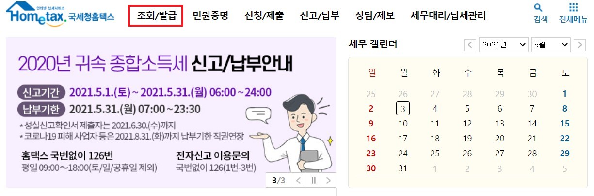 홈텍스에 들어가시면 아래와 같은 화면을 만나보실 수 있습니다.