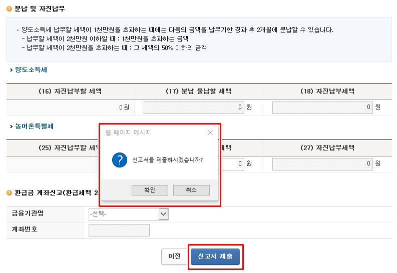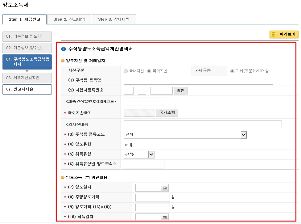 마지막으로 해외주식 양도소득세 신고서 제출을 하면 됩니다.