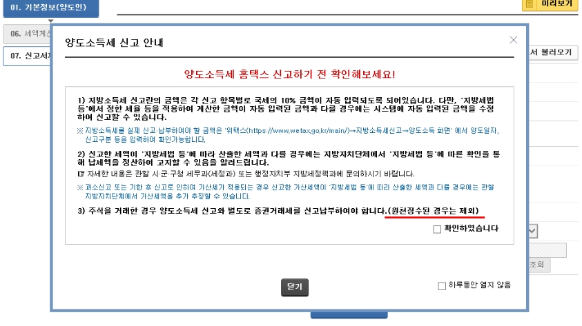 양도소득세 신고 안내에 대한 내용이 나옵니다. 우리는 해외주식에 대한 세금이기 때문에 이 항목과 관계가 없습니다. 그냥 넘어가도 됩니다.