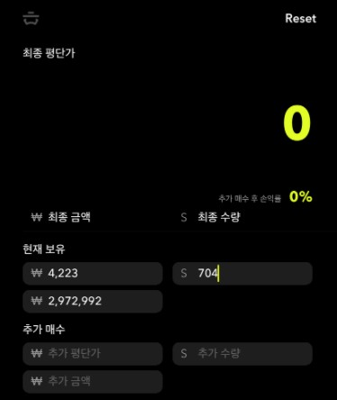 주식 물타기 계산기 앱을 실행하고 현재 보유한 종목의 매입단가와 수량을 입력합니다.